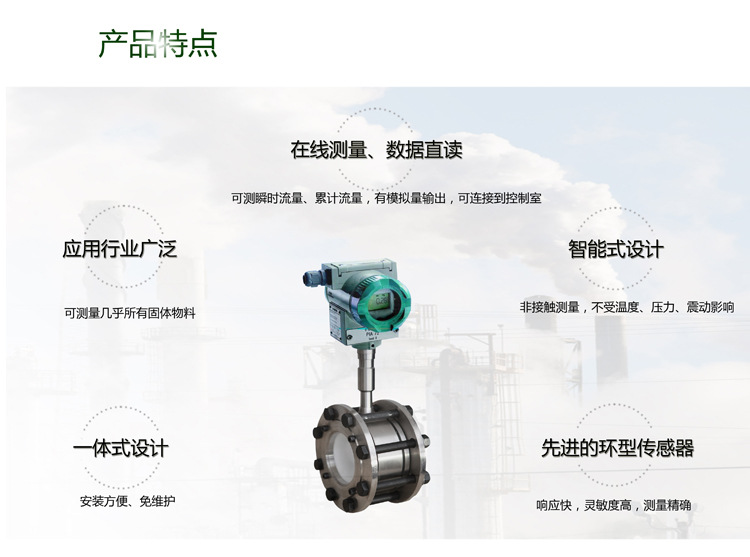 化工,化纤、玻璃制造厂,食品、造纸、矿冶、环保、钢铁、发电站、石油、水泥制造等工业领域中。用来测量各种煤粉、矿粉、石灰、水泥,面粉,石油焦粉,等各种微小颗粒介质的体积流量的测量。